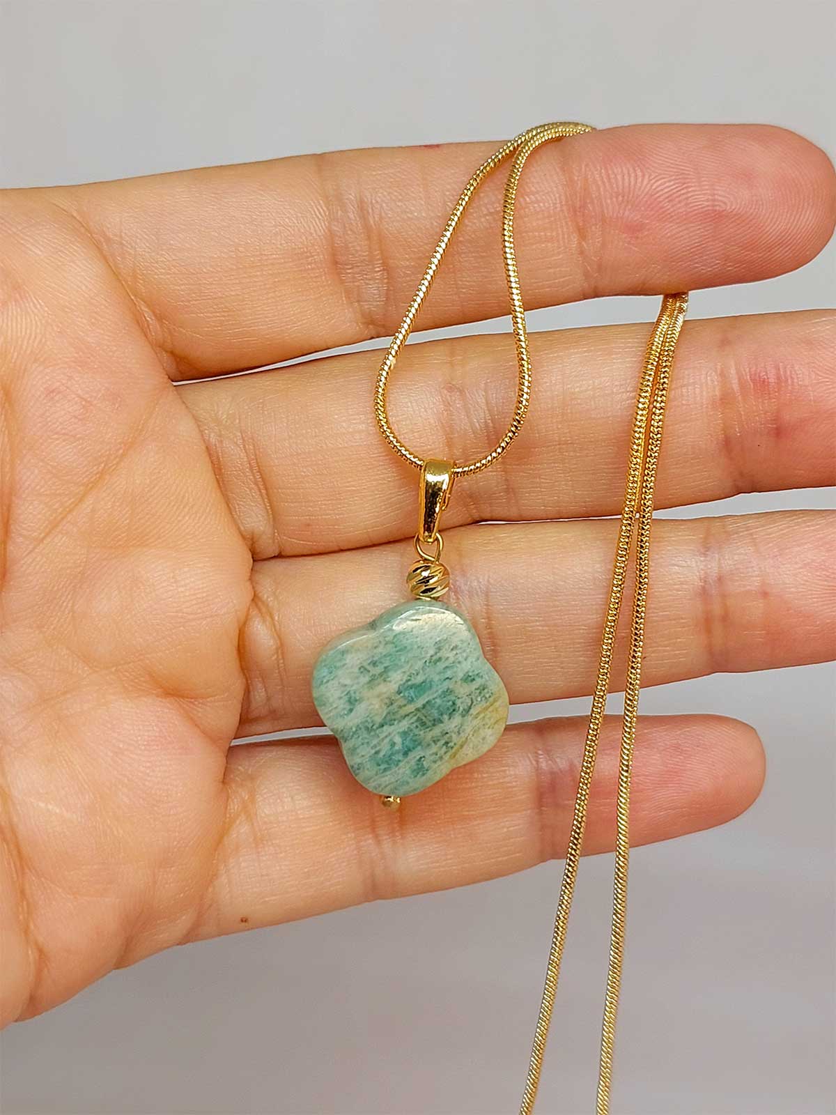 Amazonit Taşı Kolye Ucu Yonca Temalı Altın Kaplama Zincirli (49806)