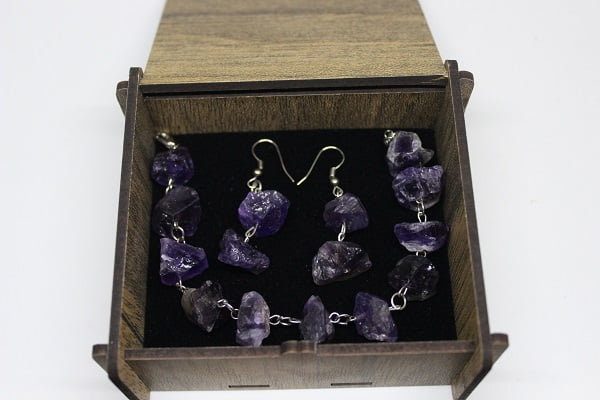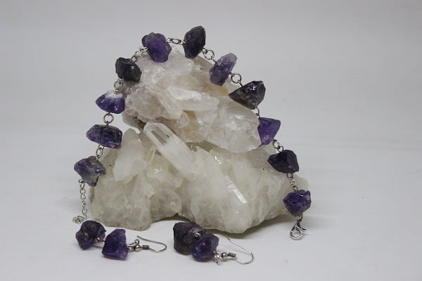 Ametist Ham Taş Bileklik & Küpe Seti