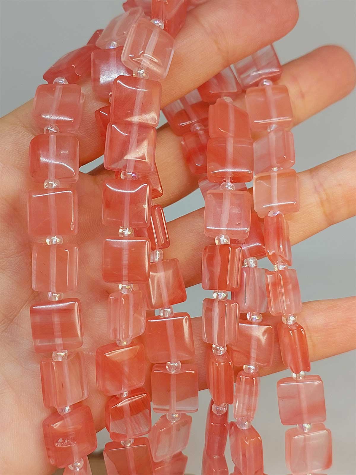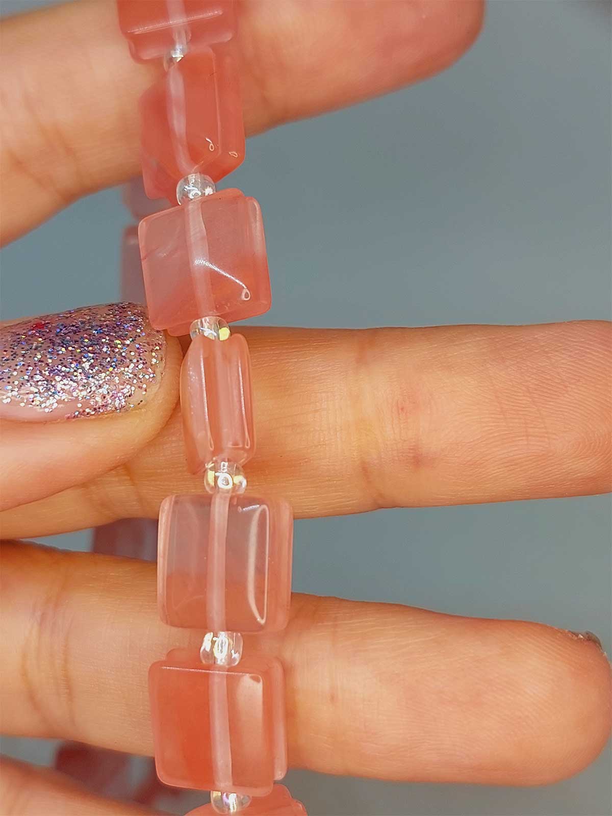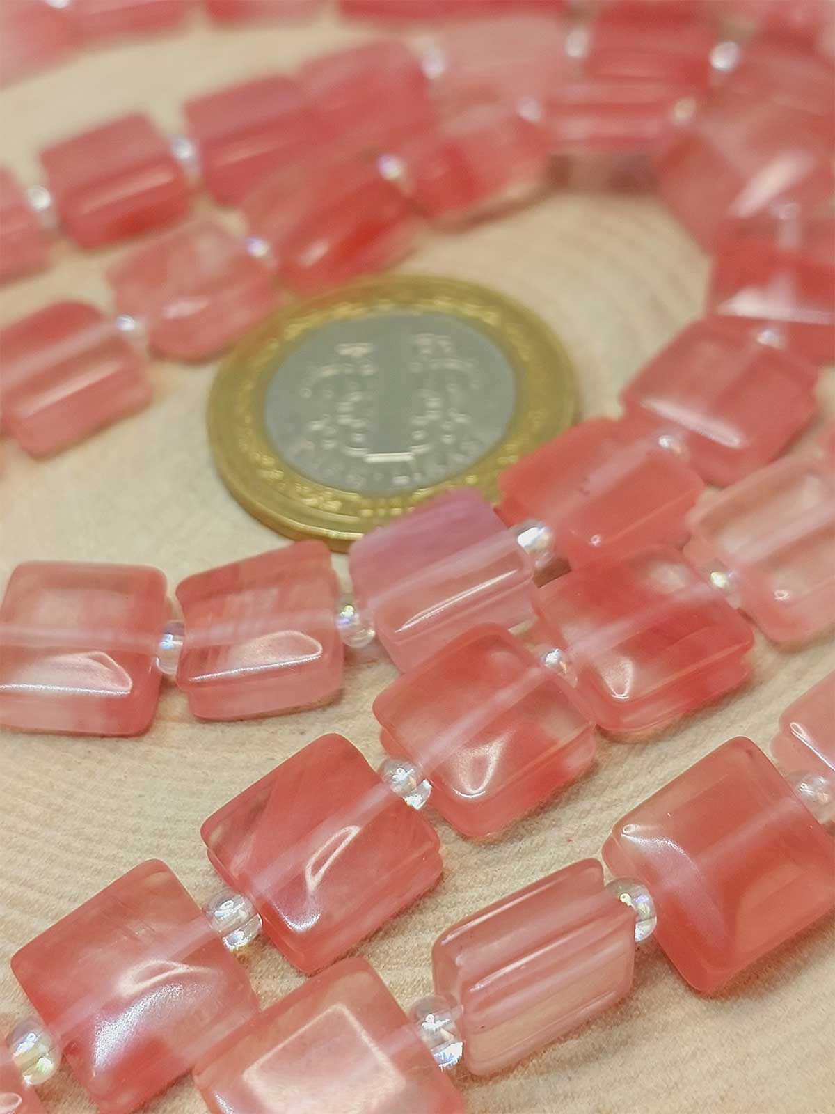 Gül Kuvars Taşı Yandan Oyuklu Kare Kesim 10x10mm Dizi (49552)
