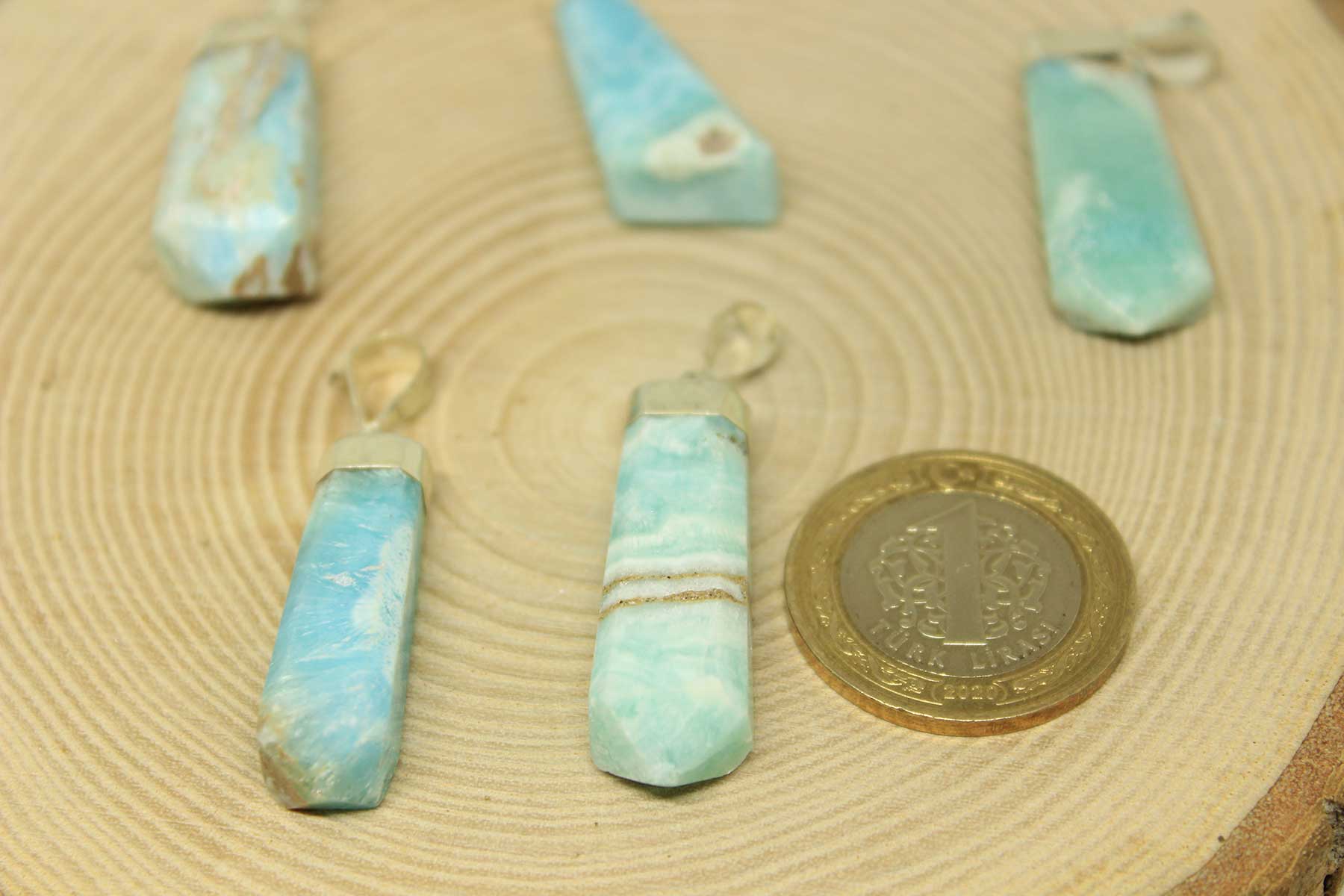 Karayip Kalsit Taşı 925 Ayar Gümüş Aparatlı Kolye Ucu
