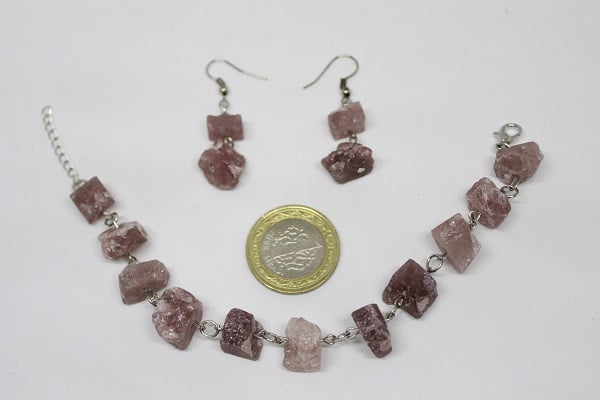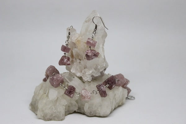 Kırmızı Kuvars Ham Taş Bileklik & Küpe Seti