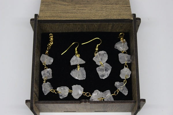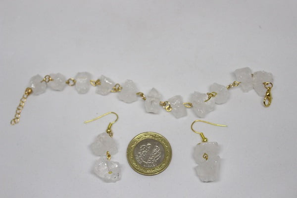 Kristal Kuvars Ham Taş Bileklik & Küpe Seti