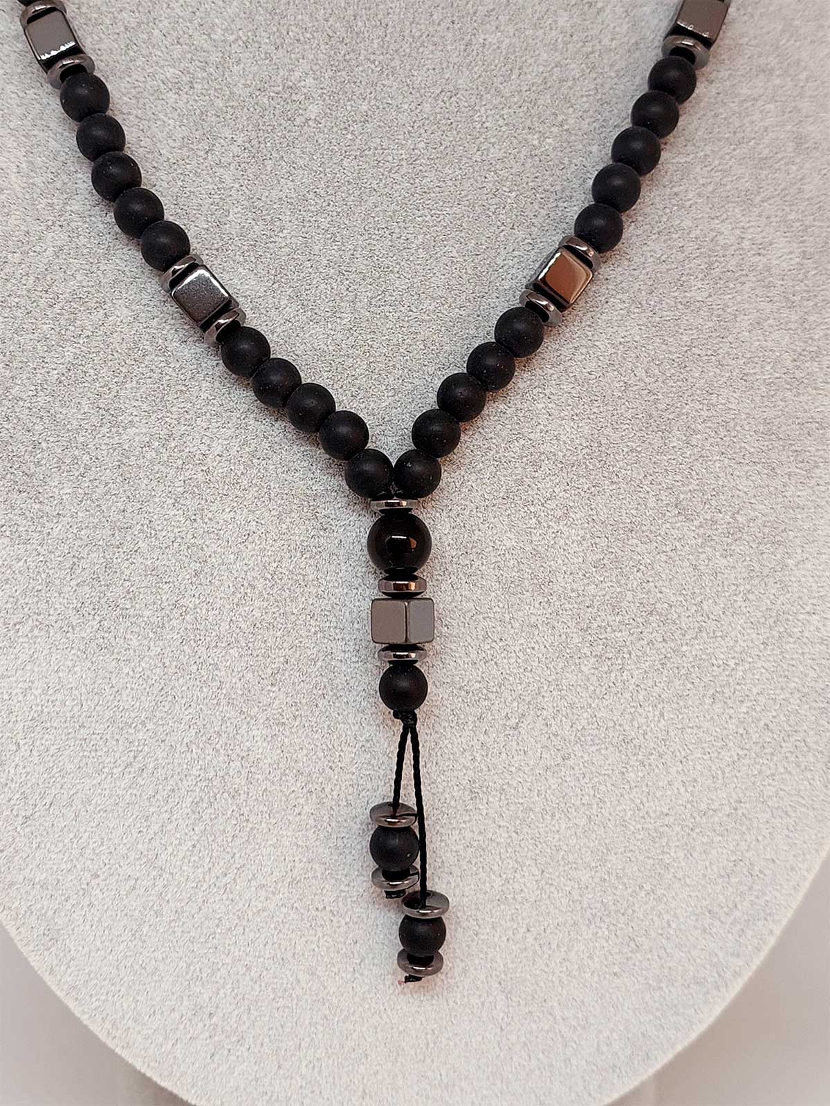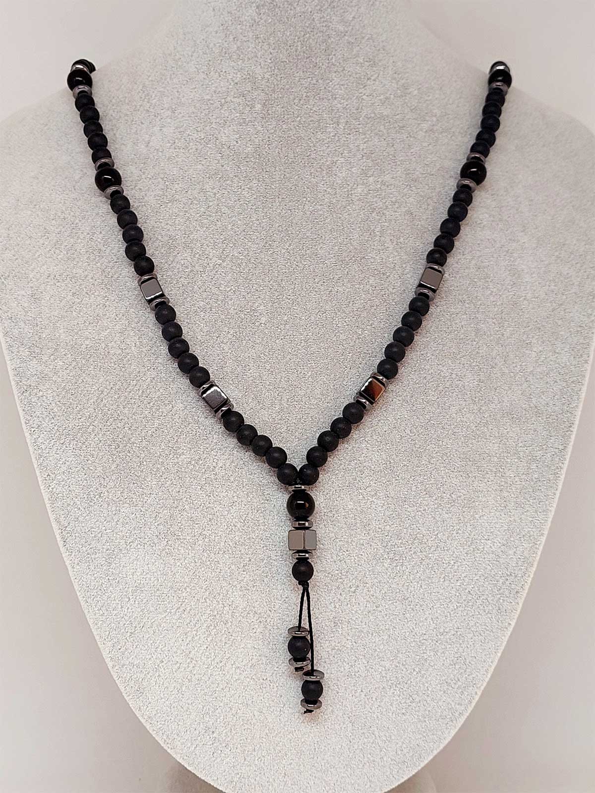 Oniks & Küp Hematit Taşı Tasarım Erkek Kolyesi